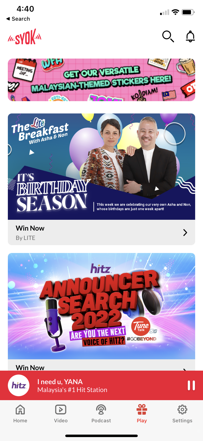A while back, we helped Astro Radio launch the all-new SYOK app! Along with 60 new online radio stations, the new and improved radio app showcases a number of fresh and exciting features that delivers an engaging and immersive experience for users — including dark mode, an alarm feature that enables users to stay alerted of new content, live video channels that allow users to interact with one another via chat, enhanced podcast search filters, and more.